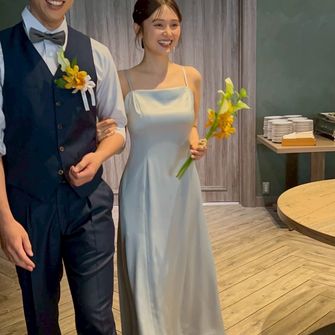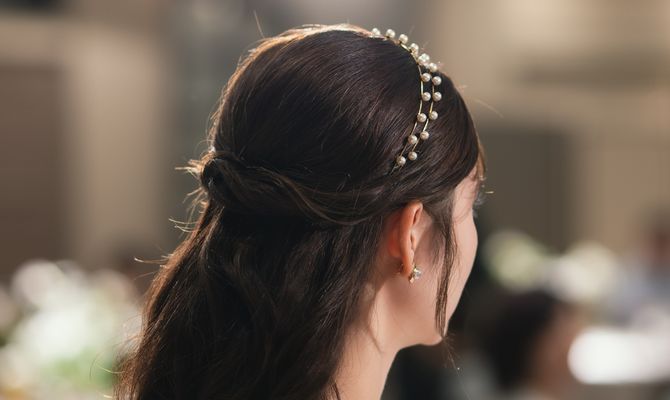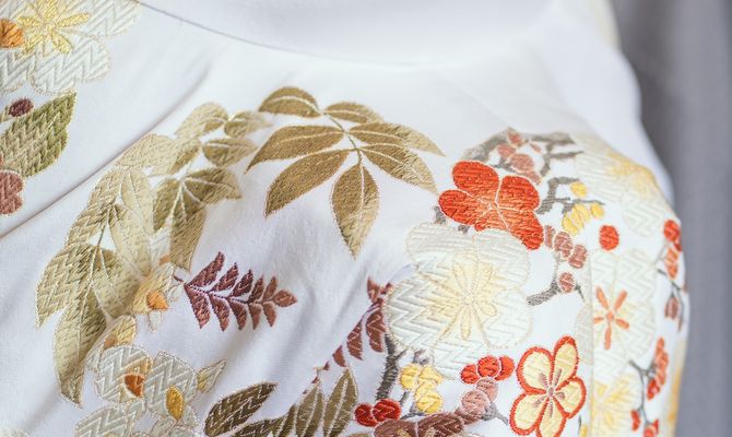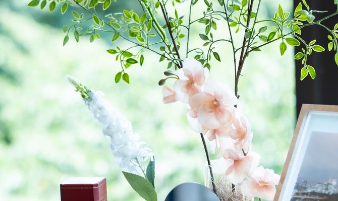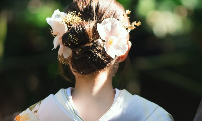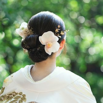 洋装と和装のどちらも取り入れたかったので、どちらにも合うように明るいグリーンやホワイト、ゴールドで全体的にまとめました。