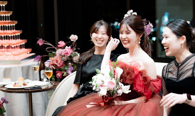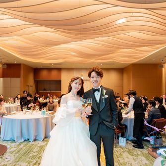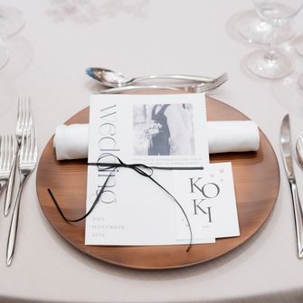 TIAD,Autograph collectionの待合室や披露宴会場が洗練された空間だったため、ウェルカムスペースやペーパー類はシンプルにしました。それに加え、装花で可愛さをプラスして大人可愛い空間に仕上げました。