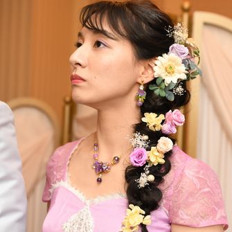 ディズニーの仲間たちがお祝いに来てくれるのはもちろん、チャペルの雰囲気やお料理の盛り付け、音楽、ライティングパフォーマンスなど、様々な場面でディズニーらしい夢の時間を、そしてみんなが楽しめるショーのような1日になるように工夫しました。
