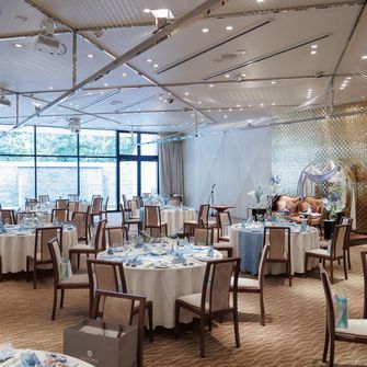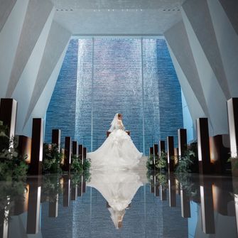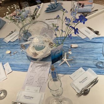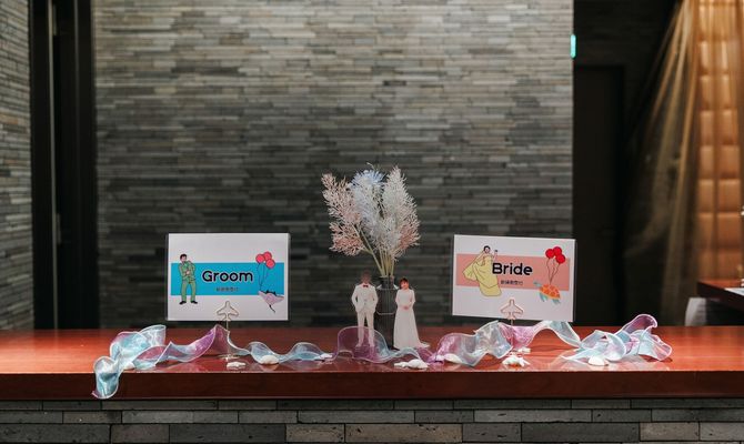 ゲストには「今から一緒に旅へ出発するような気持ちになってほしい」という思いから、披露宴会場に足を踏み入れた瞬間、まるで海の中へ到着したような雰囲気を味わってもらえるようレイアウトを工夫しています。