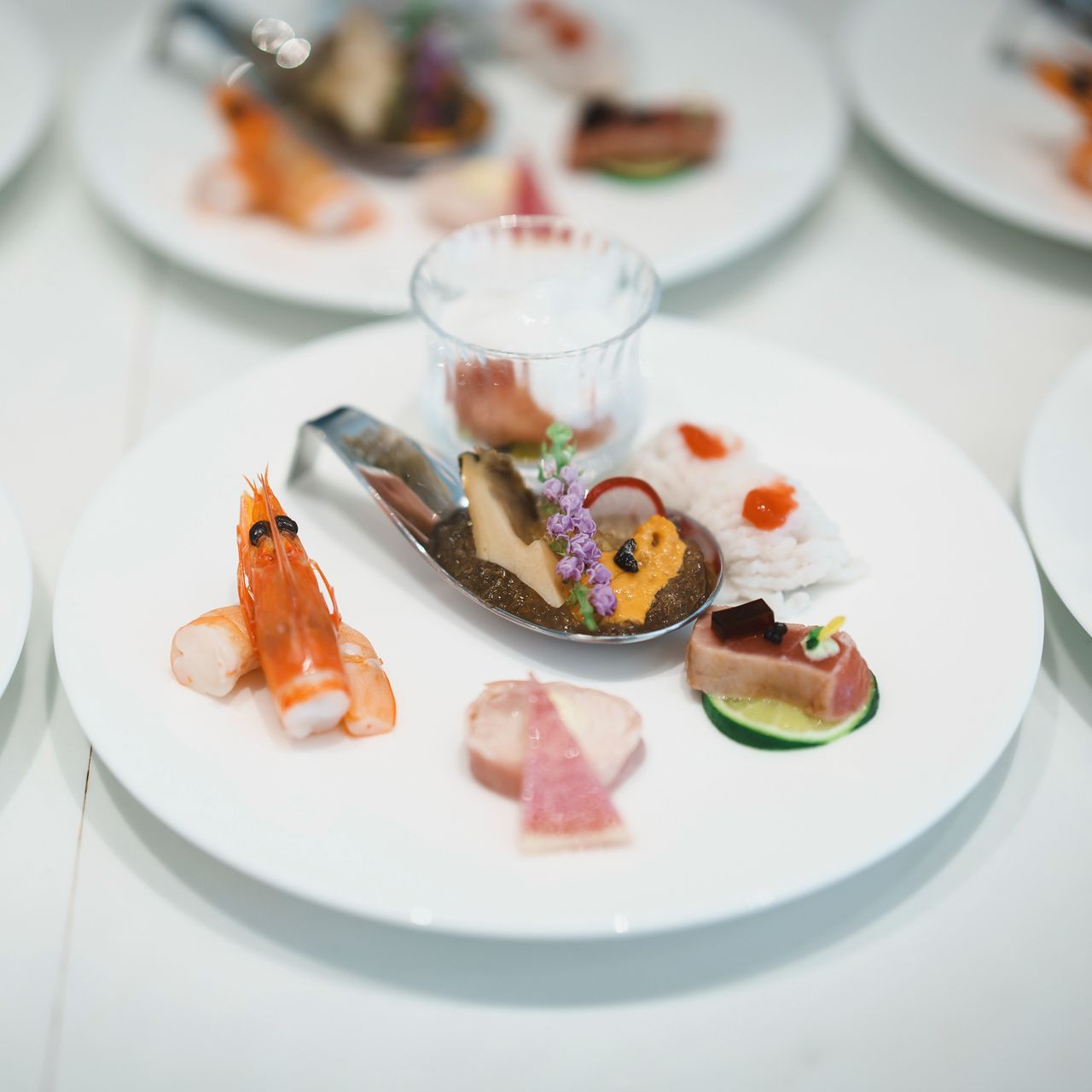 最初にでてくる料理が1番写真にとると教えていただき豪華で見て目も華やかなお祝いのアミューズに☺️