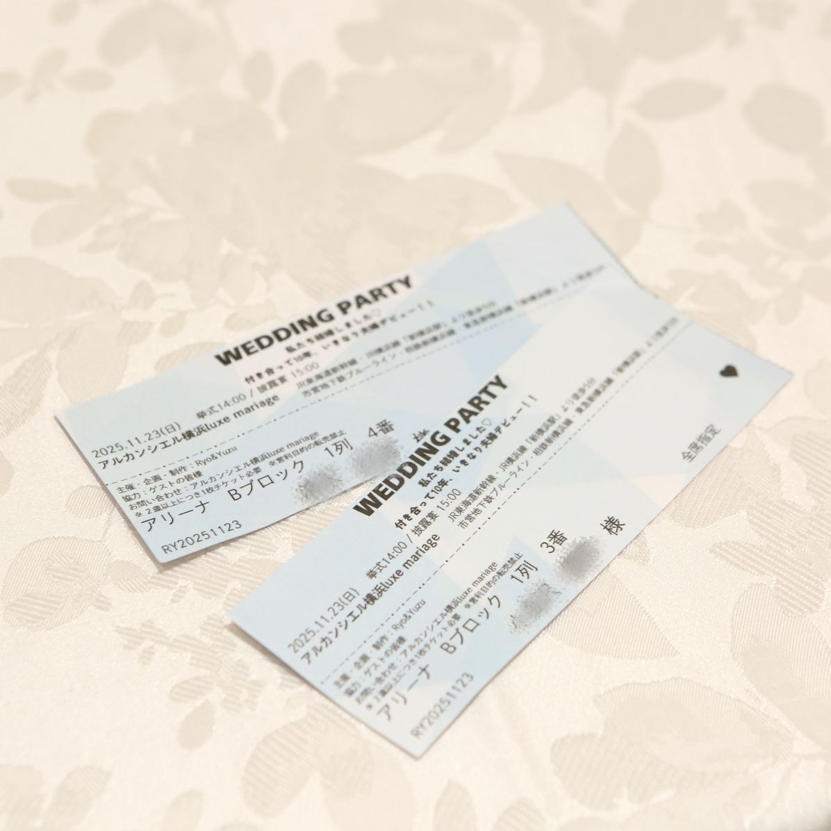 裏テーマが「ライブ」だったので、エスコートカードはチケット風のデザインにしました。
