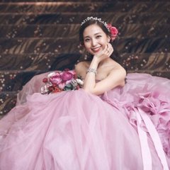 濃いピンクで統一しました。もともとピンクが昔から好きで。ピンクヘイリー のドレスが淡いピンクだったので、被らないように濃いピンクにしました。