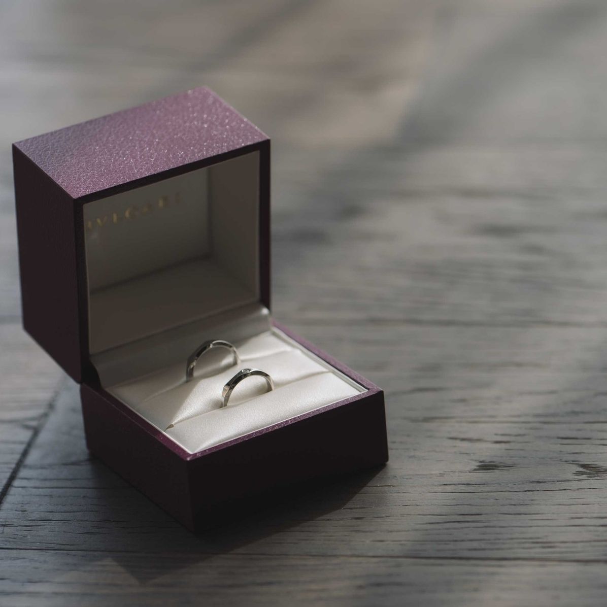 結婚指輪はBVLGARIの『Infinito』を選びました。デザインだけではなく、どこか自分たちらしさや、指輪に込められたストーリーを重視して選びました。