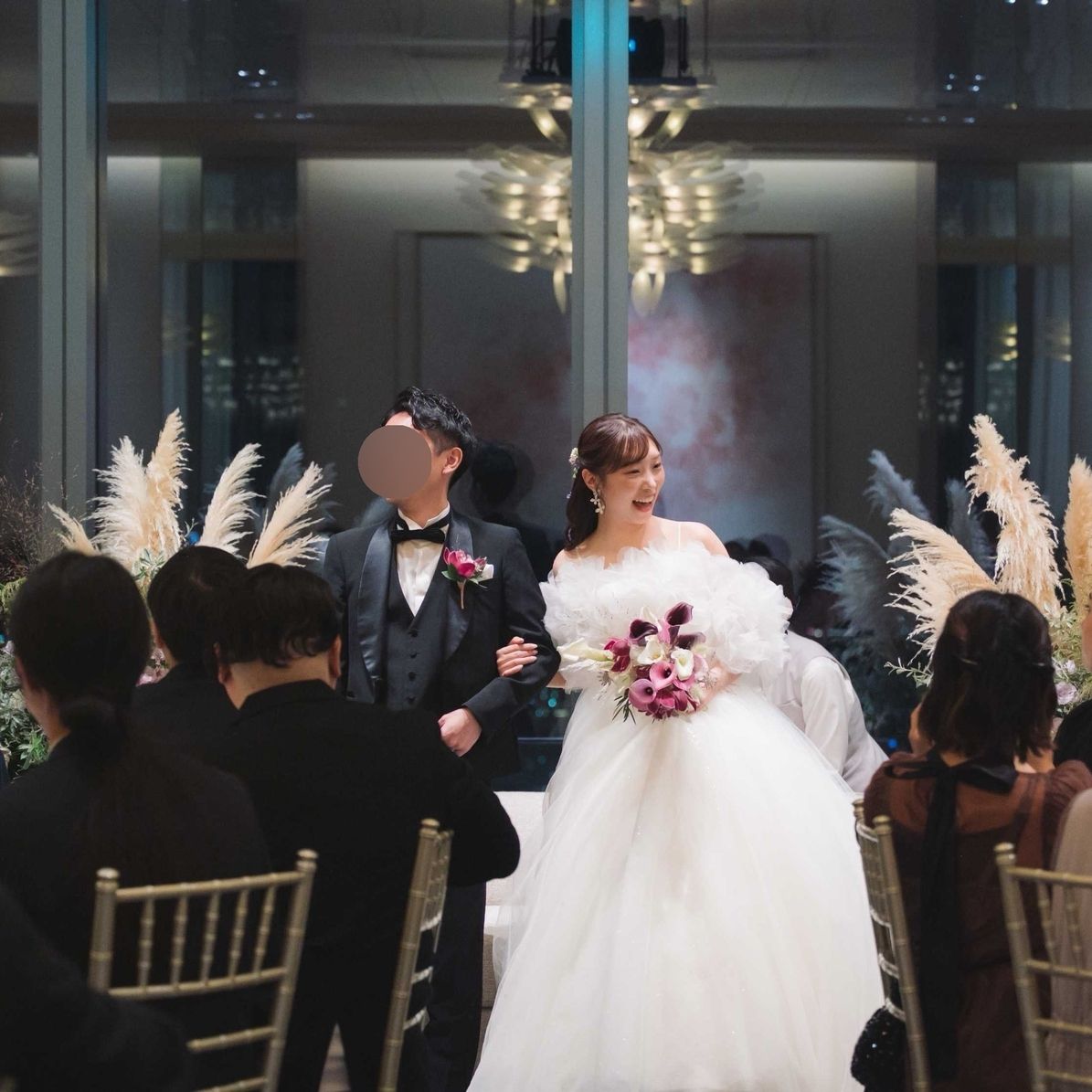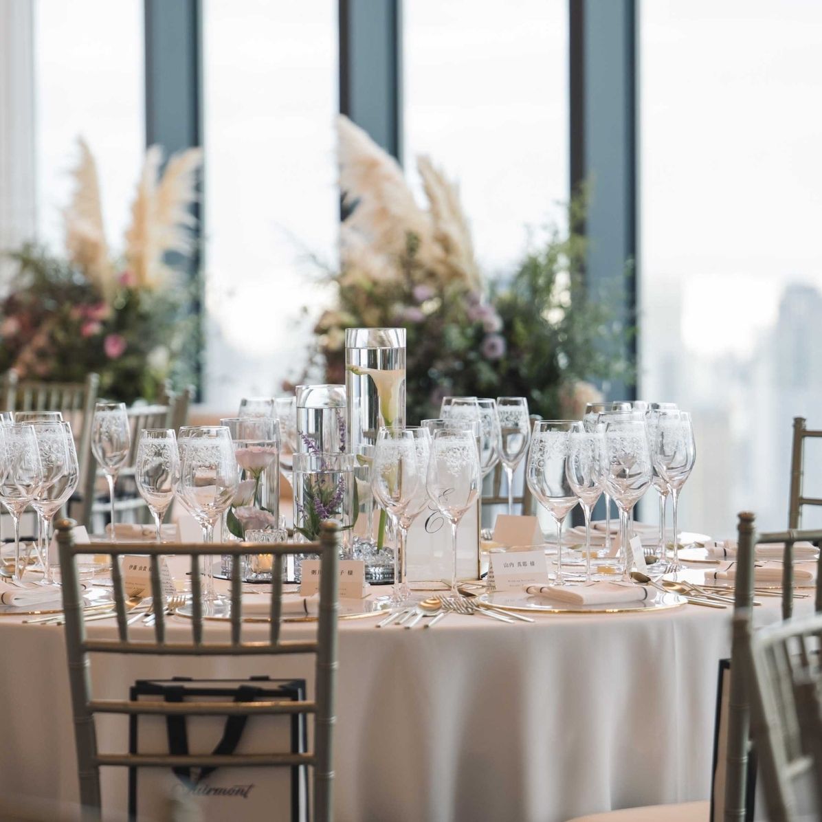 さらに、フェアモント東京は披露宴会場の造り的に新郎新婦とゲストの距離がとても近いことも安心ポイントでした。人数が多いと一人一人との距離が生まれるイメージがあったのですが、実際は目線が届きやすく、しっかり顔を見て過ごせたことで、終始緊張せず、あたたかい時間になりました。“景色を大切にしたい”“特別感のある時間を作りたい”“ゲストとの時間を近くで楽しみたい”そんな方に本当におすすめの披露宴会場です。