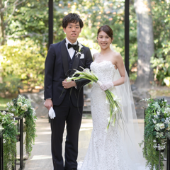 会場の選ぶ際の決め手になった、緑の中のガラス張りのチャペル。光も入り1年中緑を感じられるチャペルは、どの場面で写真をとっても映えました。