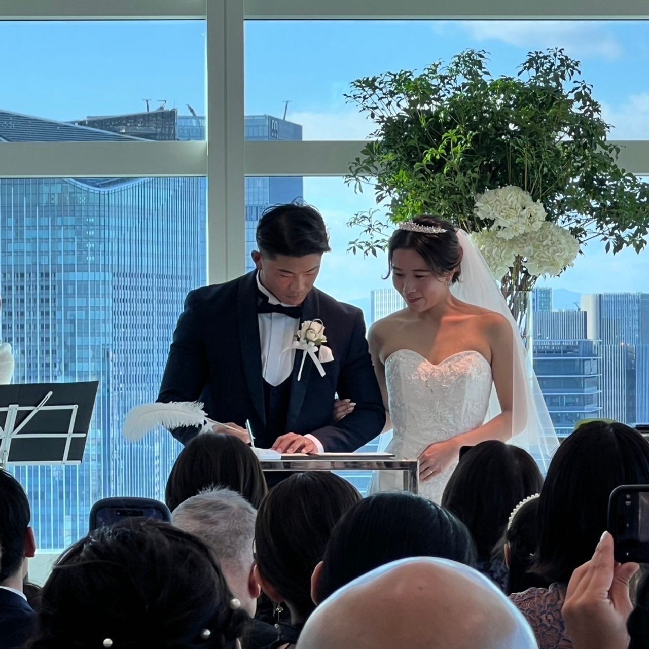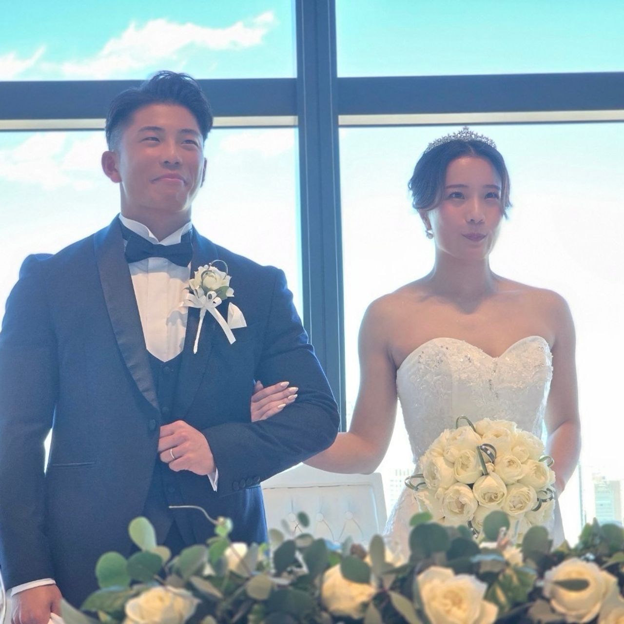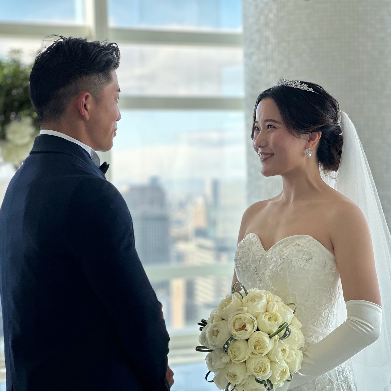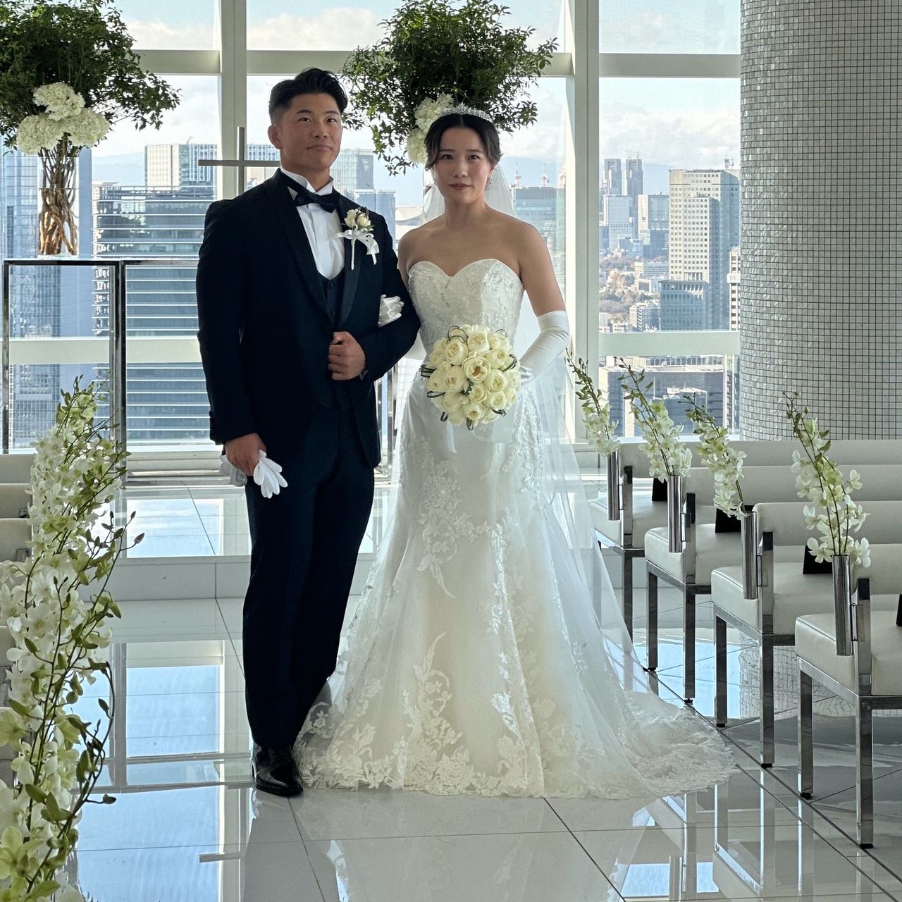 式場選びでは、景色の良さとプランナーさんの対応を重要視して選びました。また、駅から近いアクセスの良さも大きな決め手のひとつです。