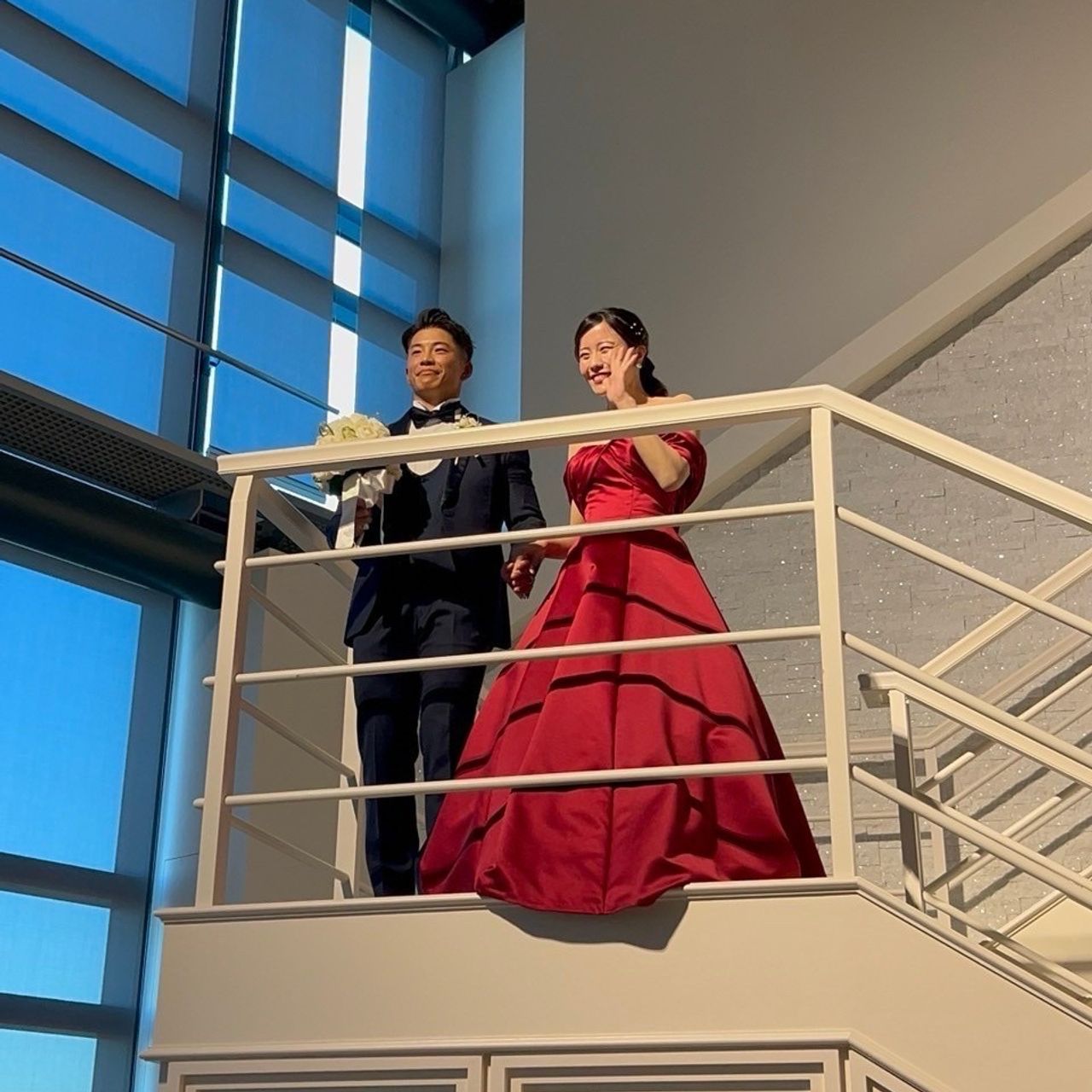 赤いドレスです。最初は検討外でしたが、実際着てみるととても綺麗でした✨