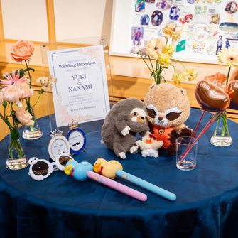 『ゲストと身近に』をコンセプトに考えました。結婚式はなかなか新郎新婦と関わる時間が短いので、なるべくそう思わせないように、テーブルラウンドを取り入れたり、等身大パネルを置いたりしています。