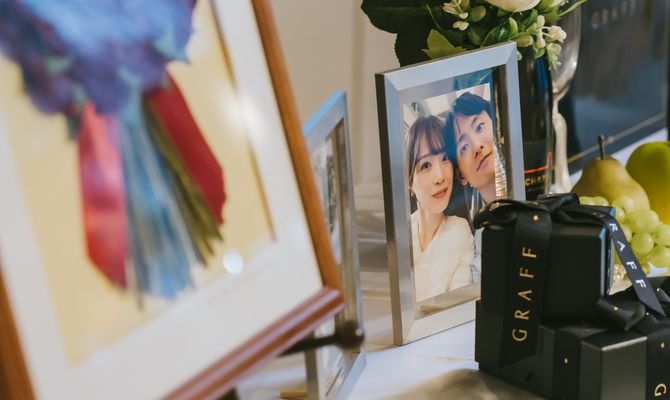 ロンドンのセントポール大聖堂という所で前撮りをしたのですが、そこからもインスピレーションを受け「煌めき」「透明感」を軸にドレスや会場をコーディネートしています。