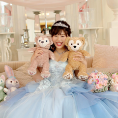 衣装担当の方に好みを伝えてこんなのを着たいとドレスの写真を送り、担当の方が私に似合うと思うと用意してくれたドレスです!全体的にスパンコールがついているので動く度にキラキラしてかわいいのです!
