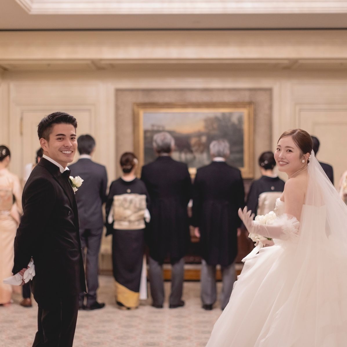 披露宴入場ではIvory & Co.のAlexandraで、王道な華やかさをプラスしています。
