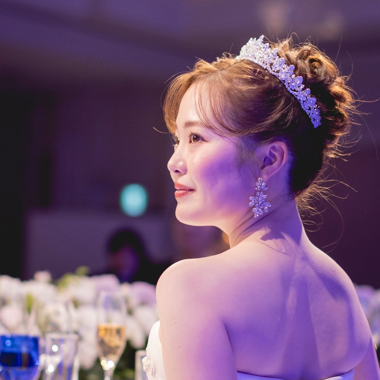 披露宴入場では、Ivoly & Co.のAlexandraを合わせ王道のアップヘアにしました。