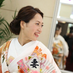 ・お色直しは和装に似合うよう、赤いリップにして和を出しつつ、髪型はゆるふわな洋髪にしました。