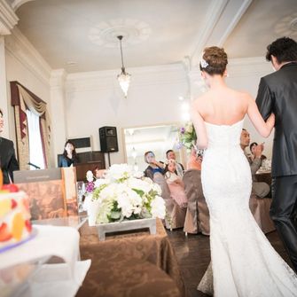 8歳の娘にたくさん活躍してもらい温か味溢れるファミリー婚になりました。憧れの結婚式のイメージがディカプリオ主演のロミオとジュリエットの仮面パーティーの様な雰囲気だったので堺筋クラブさんのアンティーク、ヴィンテージな雰囲気がイメージにぴったりだったのと、ドレスや小物の持ち込み等自由度が高くこちらの式場に決めました。
