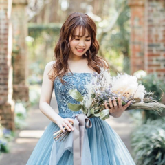 前撮りも含め、くすみ系のドレスを選んでいたので、