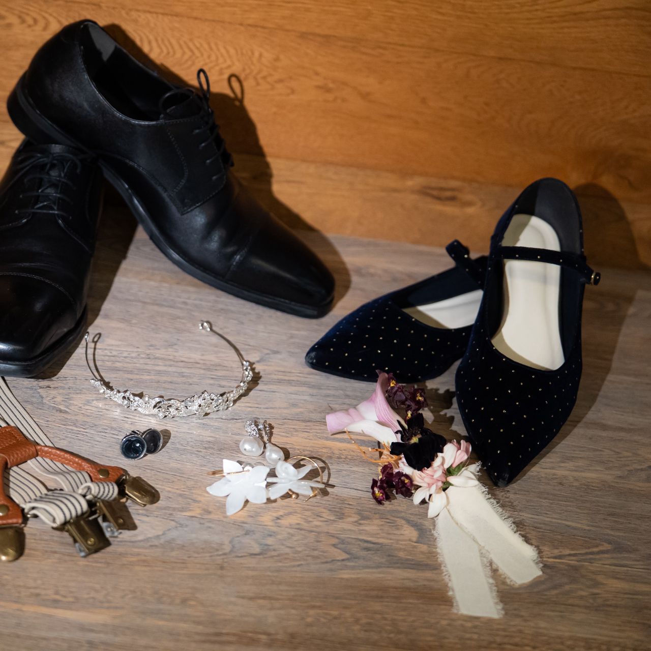 式当日はほぼ見えないと思っていたので、白色になこだわらず。実際靴が写っている写真はなかったです。