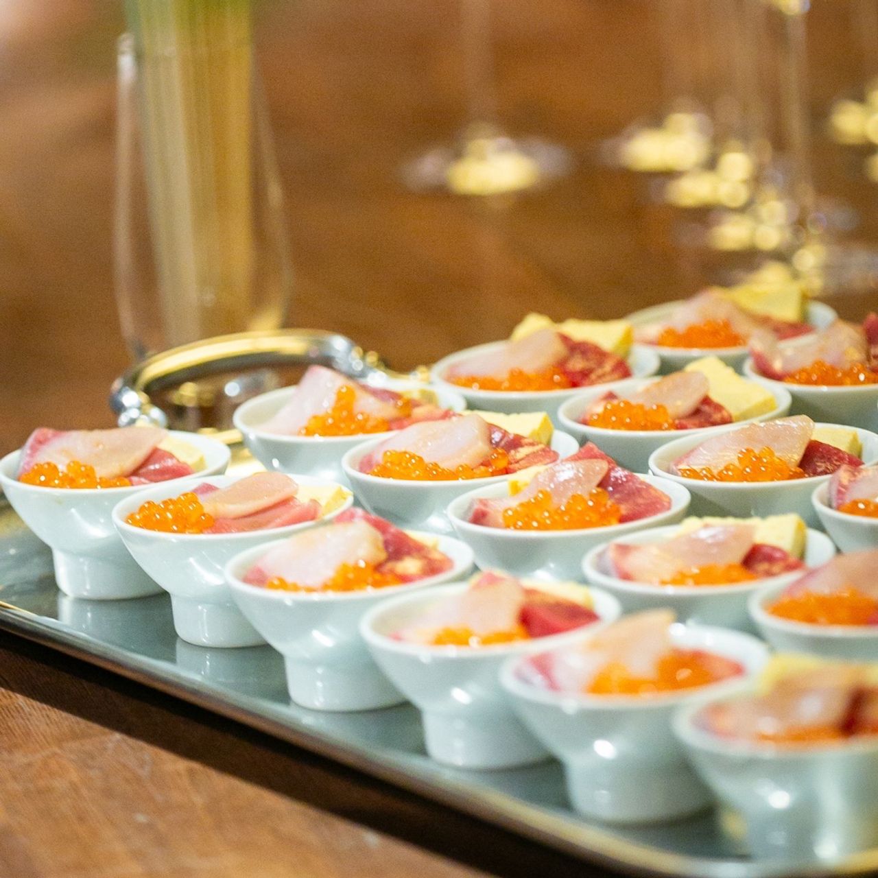 私たちはケーキ入刀の代わりに「ちらし寿司入刀」を行ったので、ゲストにミニ海鮮丼として召し上がってもらいました。