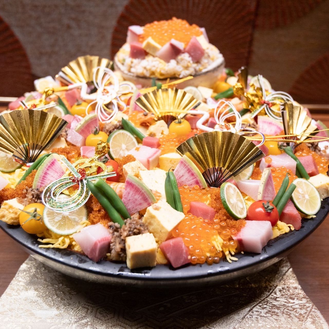 ケーキよりも和装に合うと思い、ちらし寿司に変更しました。
