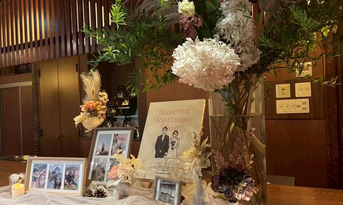 お互いの親族と親しい友人のみでの挙式・披露宴でしたので、かしこまった挨拶や余興はせず、ゲストとの会話や写真撮影やお食事を存分に楽しんでもらう時間を多く確保しました。