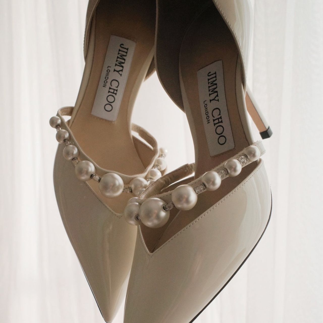ウェディングドレス:JIMMY CHOO /Latte パテントレザー・ポインテッドトゥ パンプス(パール付き)