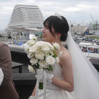 式場選びの絶対条件は、夫と出会った場所である“神戸”であること、アクセスが良いこと、海に近いこと、そしてオーシャンビューとガーデンチャペルがあることです。