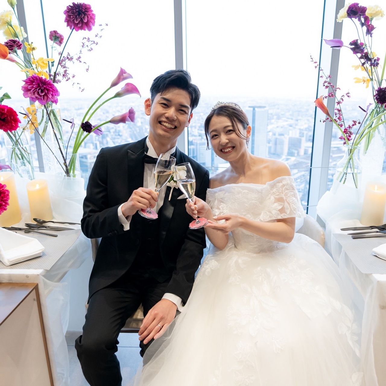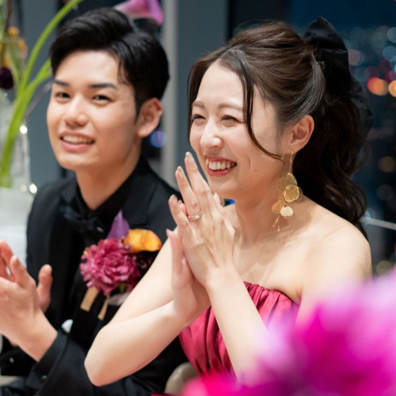 GRADATIONSでの披露宴は、とにかく夜景が美しく、会場全体がロマンチックな雰囲気に包まれていました。ゲストとの距離も近く、一体感のある空間の中で、思い描いていた通りの温かな時間を過ごすことができました。