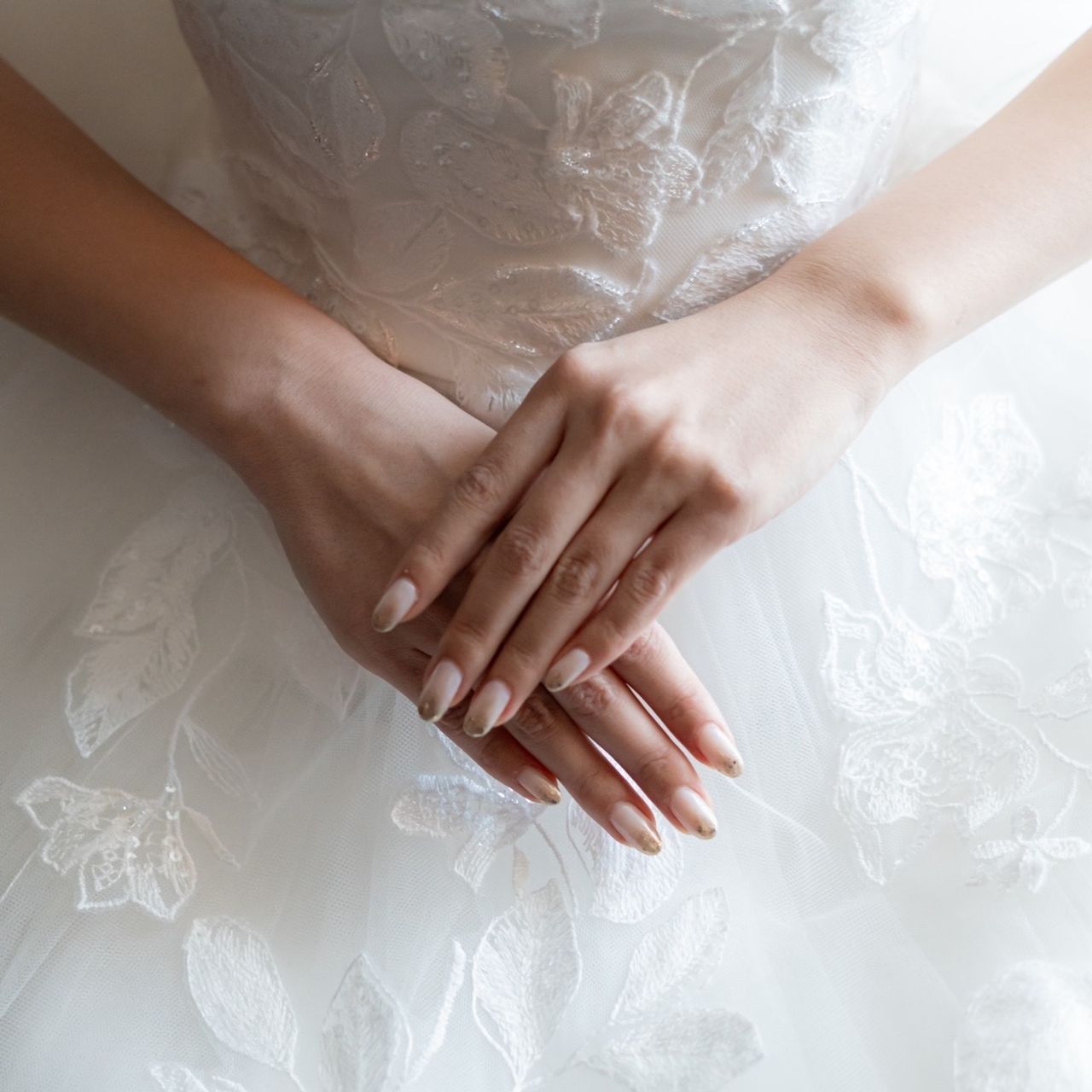 白色をベースにし、爪先には金色のラメをあしらってもらいました。