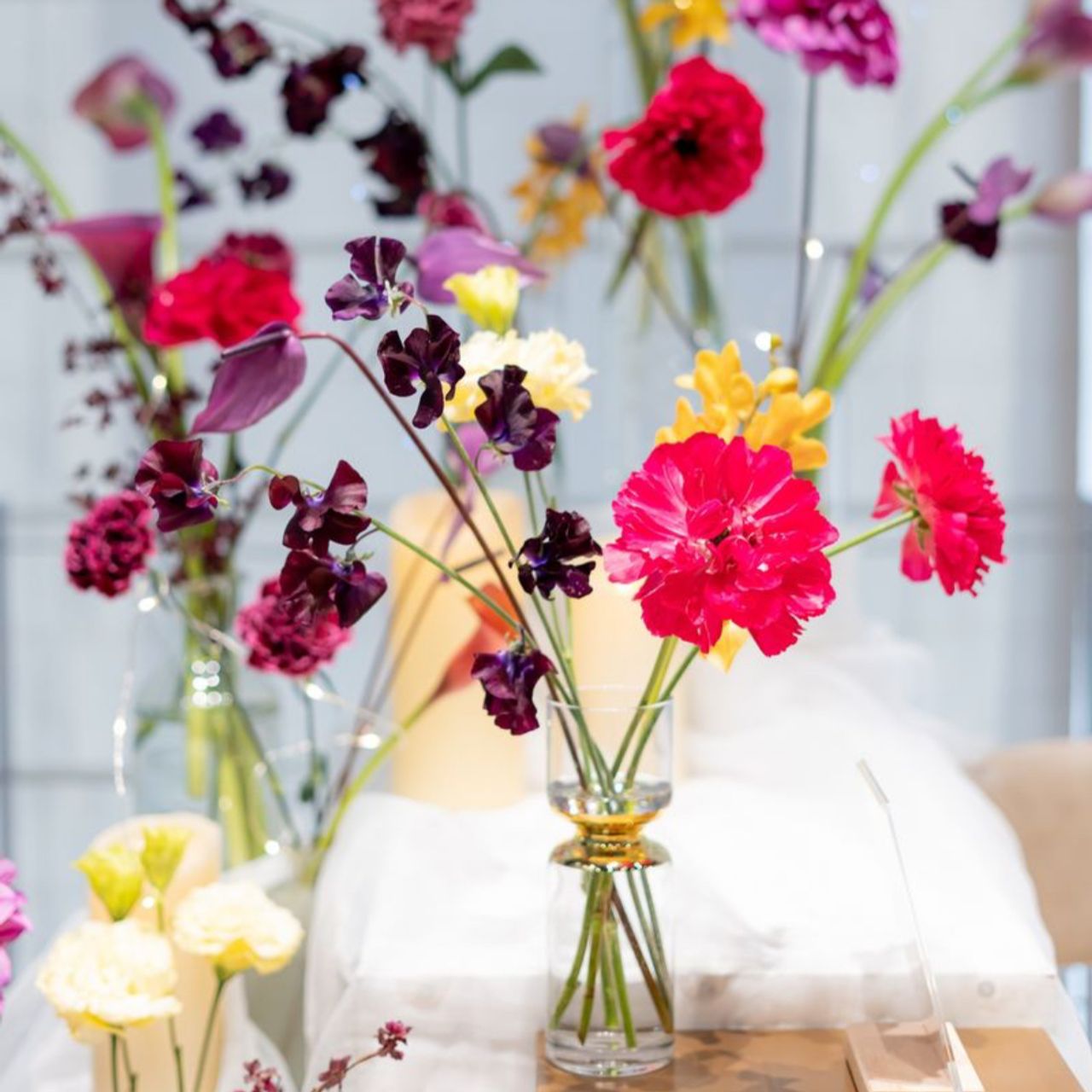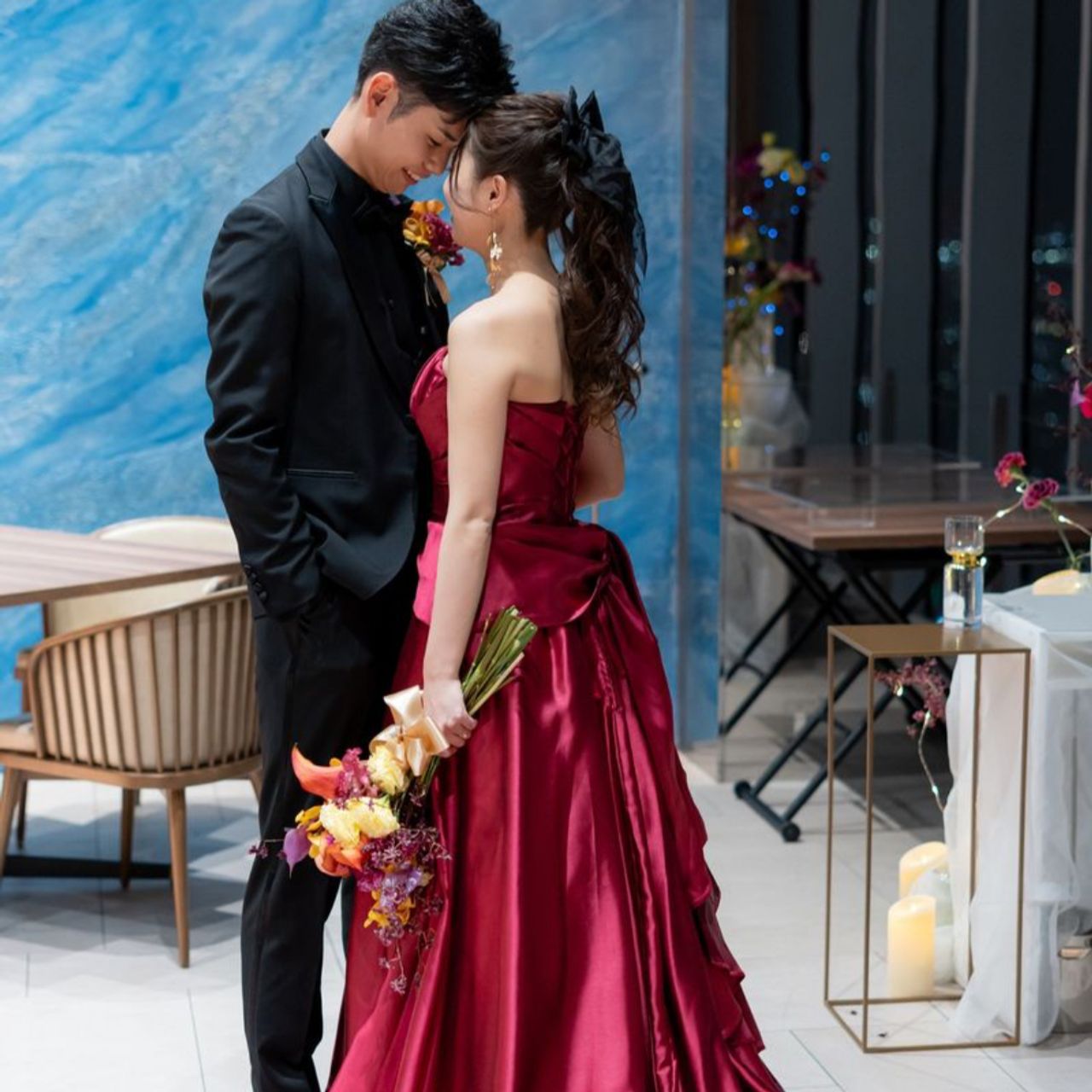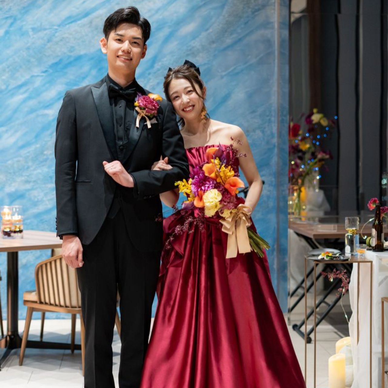 一方、GRADATIONSの披露宴では、赤・ピンク・黄色を取り入れた“可愛いけれど大人っぽい”雰囲気をイメージし、華やかさのあるコーディネートにしていただいています。