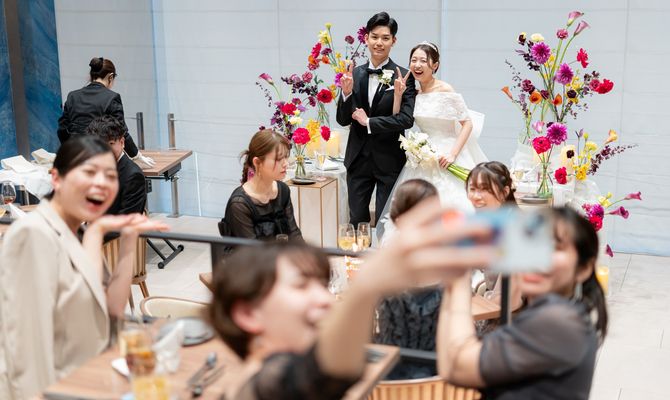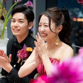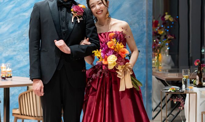 夫婦ともにお酒が大好きなので、私たちらしさといえば“お酒”だと思い、このテーマをもとにさまざまなイベントを考えました。友人のみの披露宴で、ご年配の方もいなかったため、やりたいことをすべて詰め込んでいます。