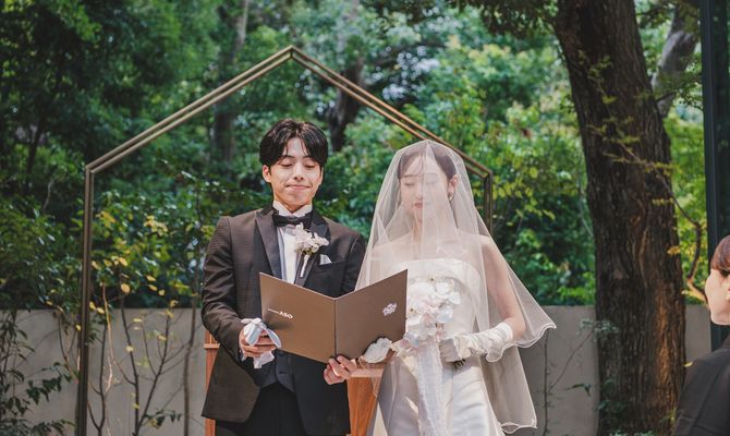 『大人可愛い雰囲気で、ゲストに来てよかった!と思っていただける式』をテーマにしました。また、夫婦でサンボマスターが好きなこともあり、裏テーマは『全員優勝〜自分たちもゲストも主役!優勝!笑〜』です。大人可愛い雰囲気は、装花やペーパーアイテムに取り入れ、来てよかった!と思っていただけるようにお料理にこだわったり、プリクラブースを設置したりしました♡
