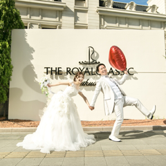 私達が披露宴をあげたグラン・ド・フルールは、大階段がとても印象的な会場です!ゲストに向かって真正面から降りる事が出来、お姫様気分を味わえます!! そして360°プロジェクションマッピングが、本当にすごいです!