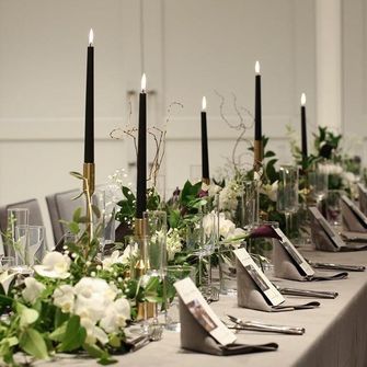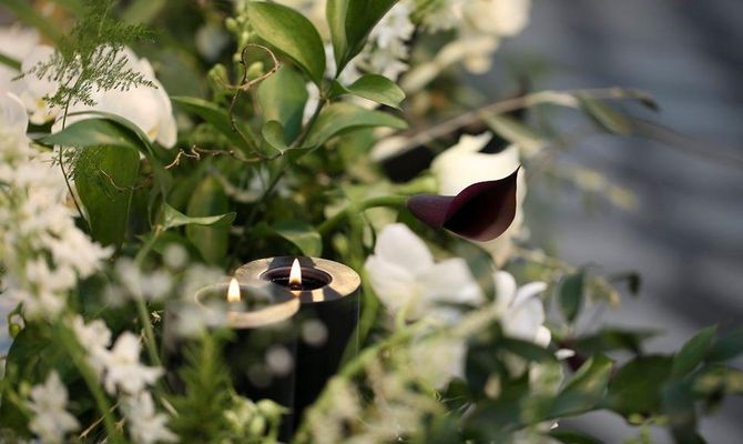モダンかつ洗練された雰囲気にしたいと思い、グリーンが多めで「幸福が飛んでくる」という花言葉を持つ胡蝶蘭をメインのお花に選びました。