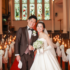 チャペルのバージンロードは真っ赤な絨毯で、目の前には大きなステンドグラスがあり写真映え間違いないです^ ^ 聖歌隊の方やパイプオルガンの演奏もあるので誰もが一度は憧れる結婚式を挙げれるのではないでしょうか。