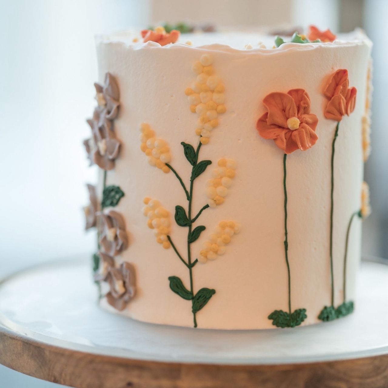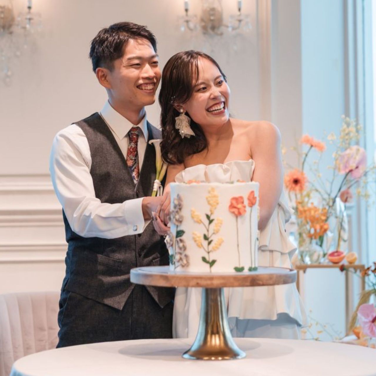 ケーキも他と被らないものが良いなと思っていたので、クリームでお花を描いたケーキを選びました。