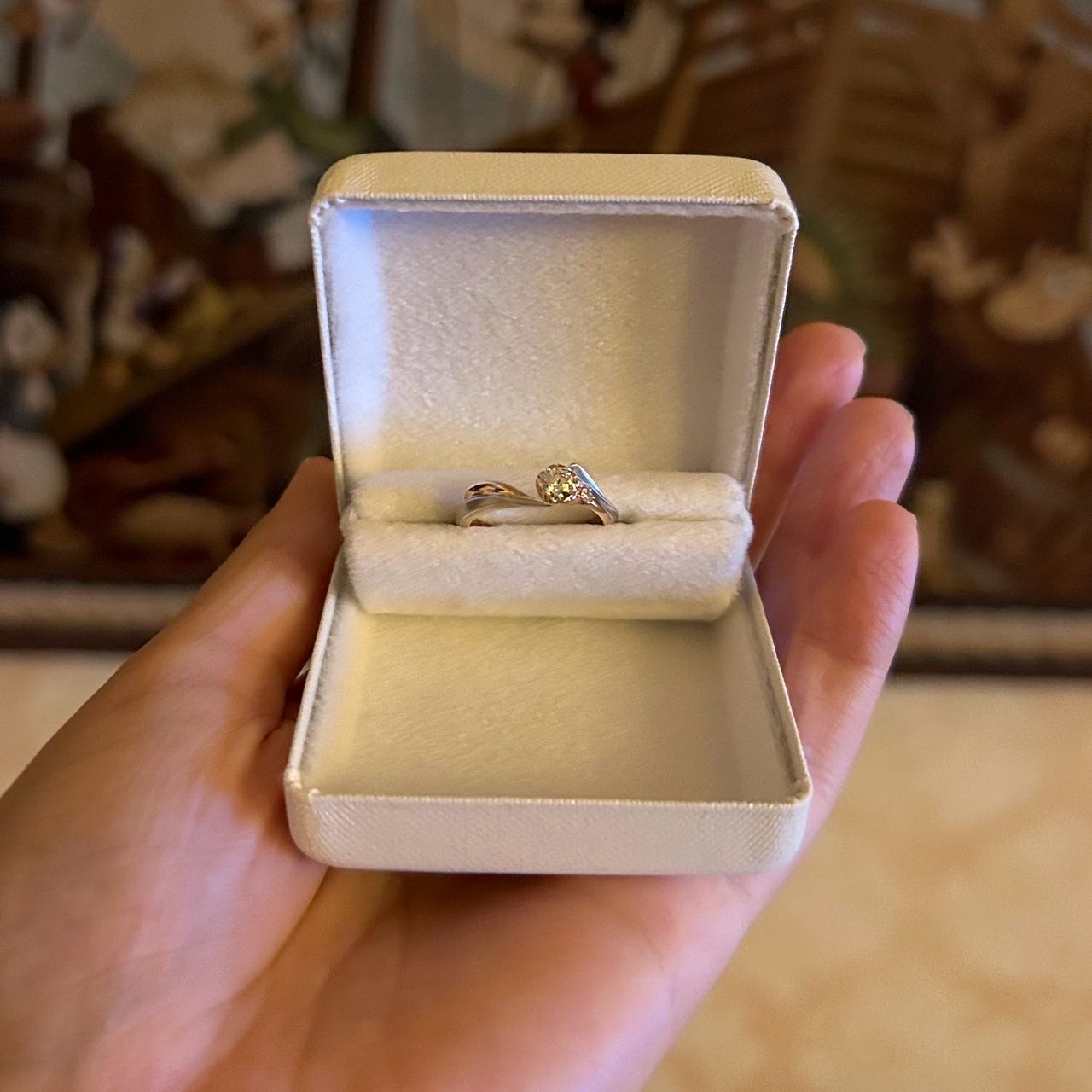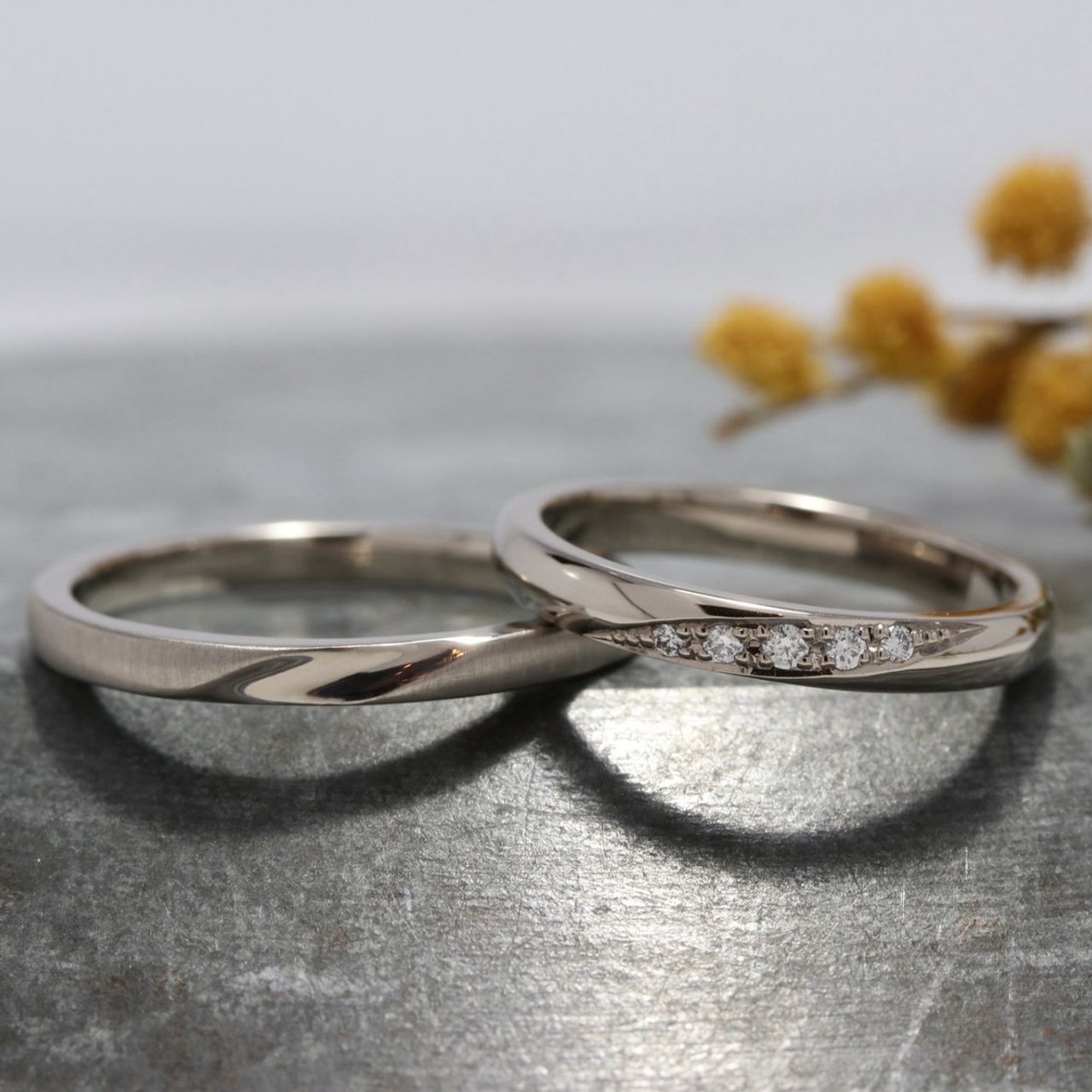 夫はシンプルなデザインで、私はダイヤが5石入ったデザインにしました。