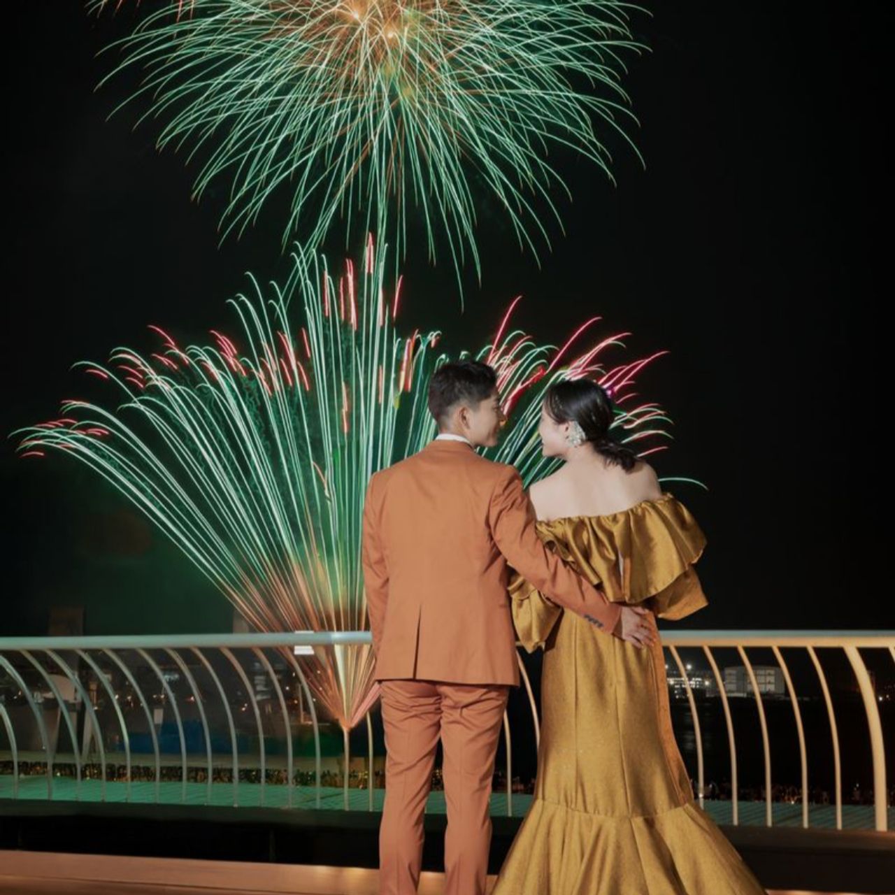 結果、当日は特等席で花火を見ることができ、ゲストはもちろん、私たちもとても嬉しかったです。花火と私たちの写真を綺麗に残せるよう、事前にリハーサルまでしてくださっていたことも、感激しました。