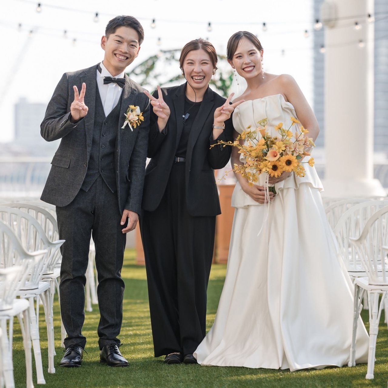 神戸の街並みが一望できるガーデンウェディングです。ゲストのみんなにリラックスして参加してほしかったのでここを選びました。アットホームな雰囲気で挙式を行うことができ良かったです。