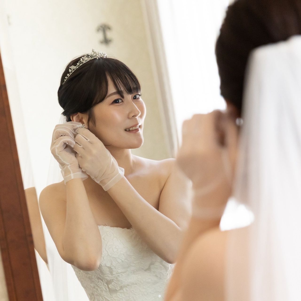 ウェディングドレスにはティアラとベール、カラードレスにはピアスとヘッドアクセサリーを使用しました。
