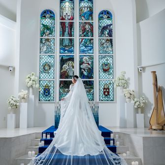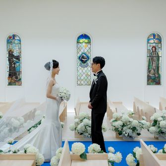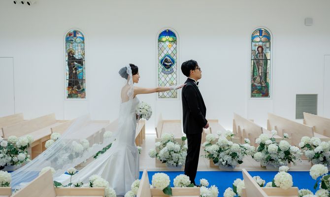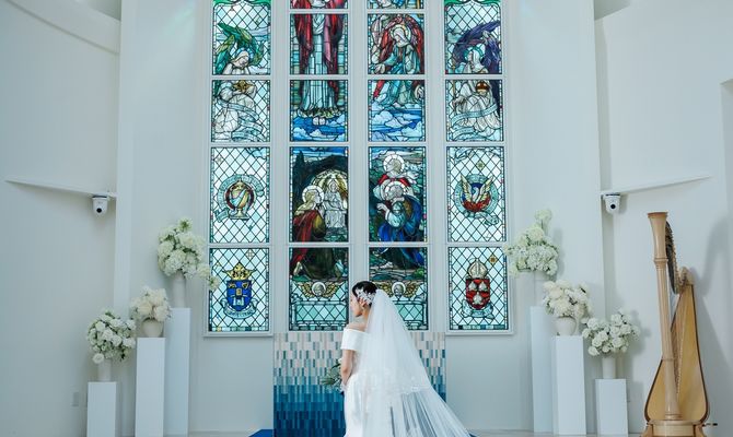 式場の決め手は、独立式のチャペル、ドレスが映えるチャペル内の階段、披露宴会場がラグジュアリーな雰囲気にできることでした。