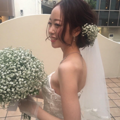 ドレスはシンプルなものを選んだので、バランスを考え、かすみ草のボリューム多めで仕上げてもらい、ベールとの相性もばっちりでした!