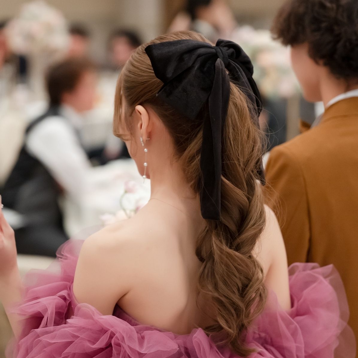 お色直し:ドレスのベルトに合わせて黒いベロア生地の大きなリボンを選んでいます🎀