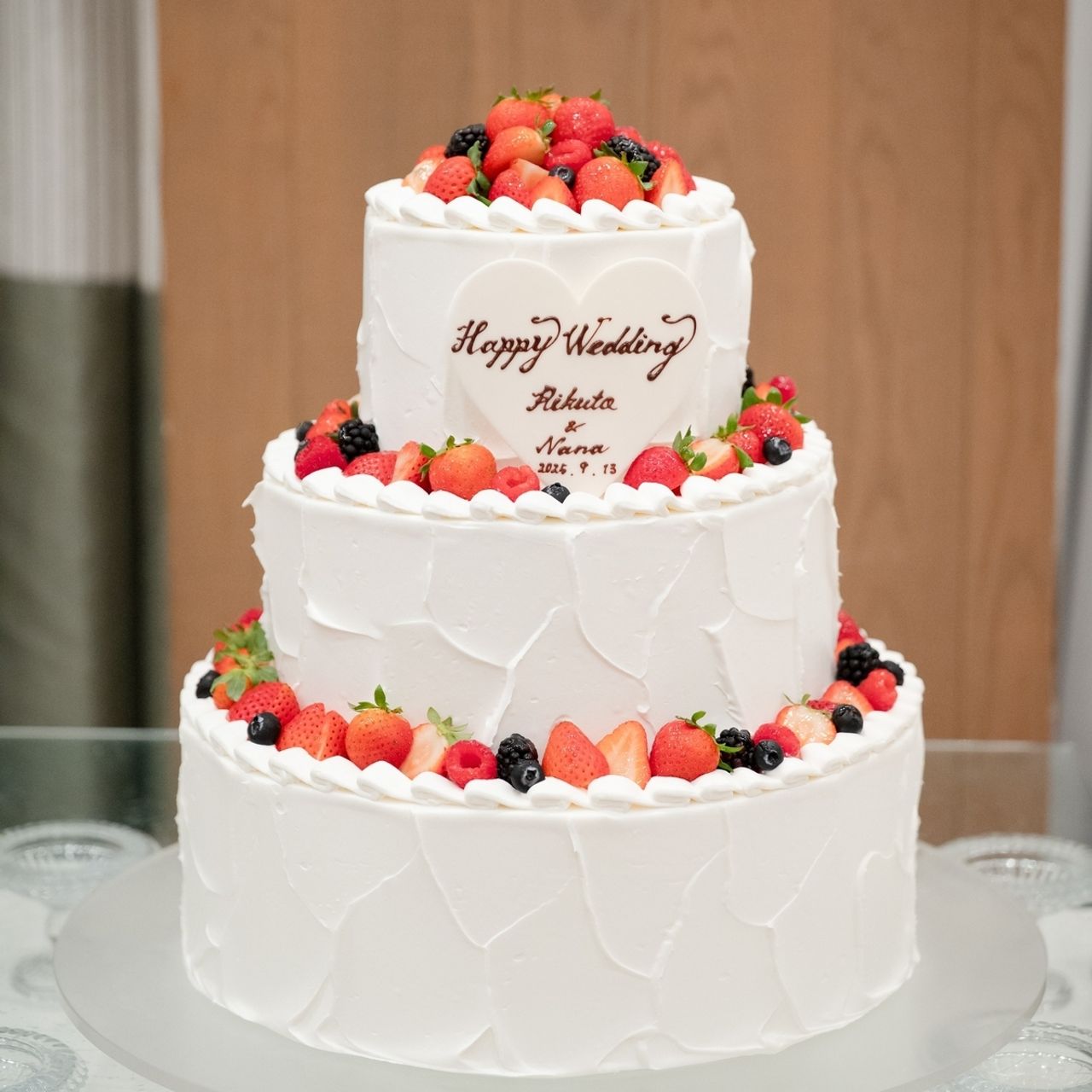 真っ白の3段ケーキに、いちごとベリーをたっぷりのせた甘かわデザインにしました🍓💕