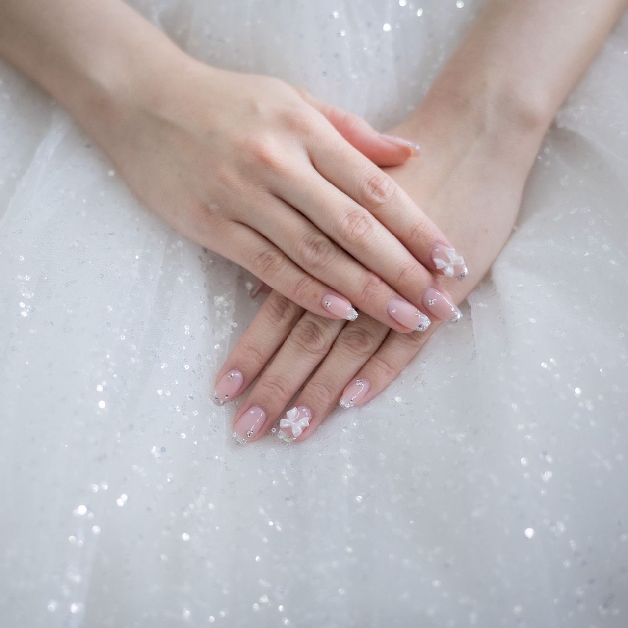 両手それぞれに1つずつリボンをつけ、可愛さも取り入れています。