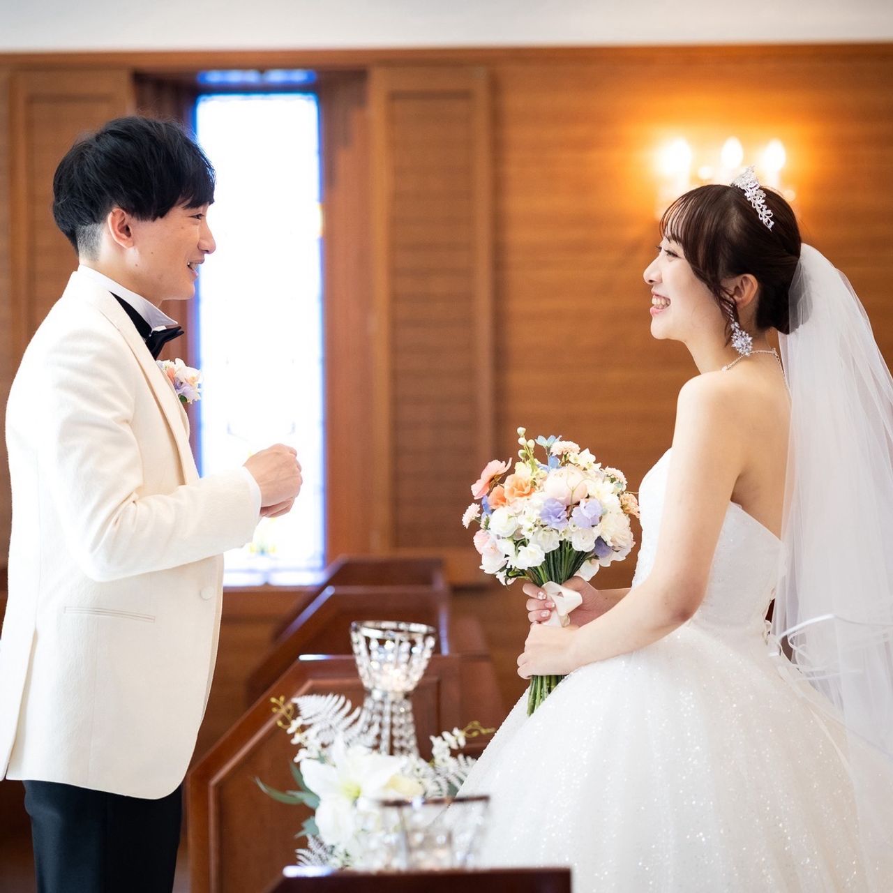当初は「ステンドグラスのある豪華な式場」を望んでおり、ベルクラシック東京の式場は「控えめ、シンプルだな」と思っていました。