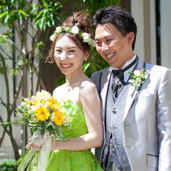 挙式披露宴はシンプルに。 お色直しでアイメイクにイエローを入れてイメージを変えました。