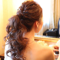白ドレスのナチュラル感に合わせてヘアも決めました。