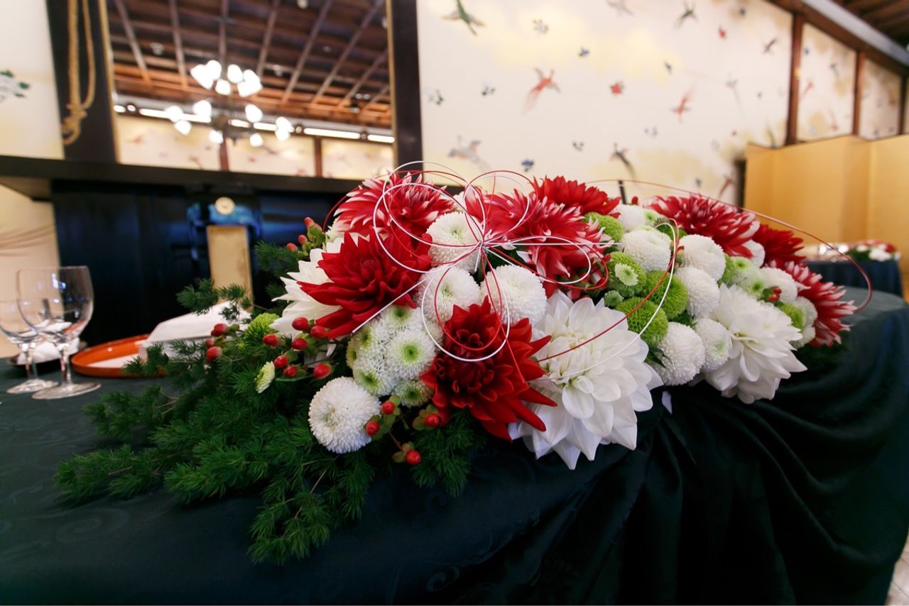 装花は明治記念館の方にお任せで、モコモコっとした雰囲気、とだけ伝えました。
