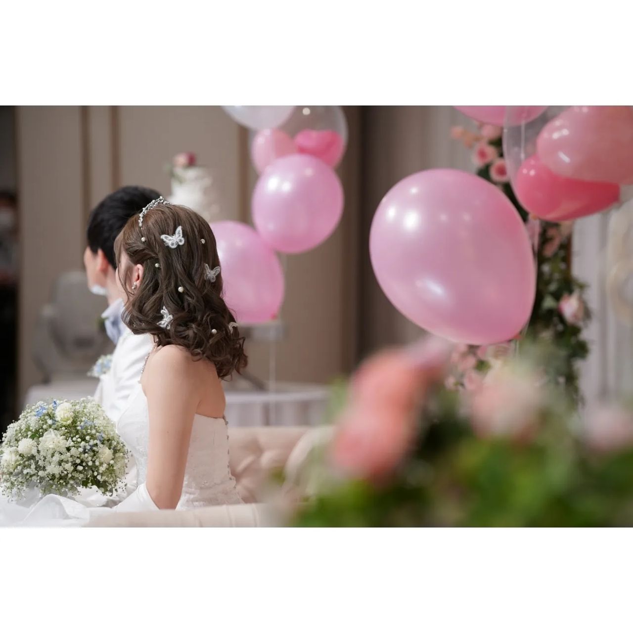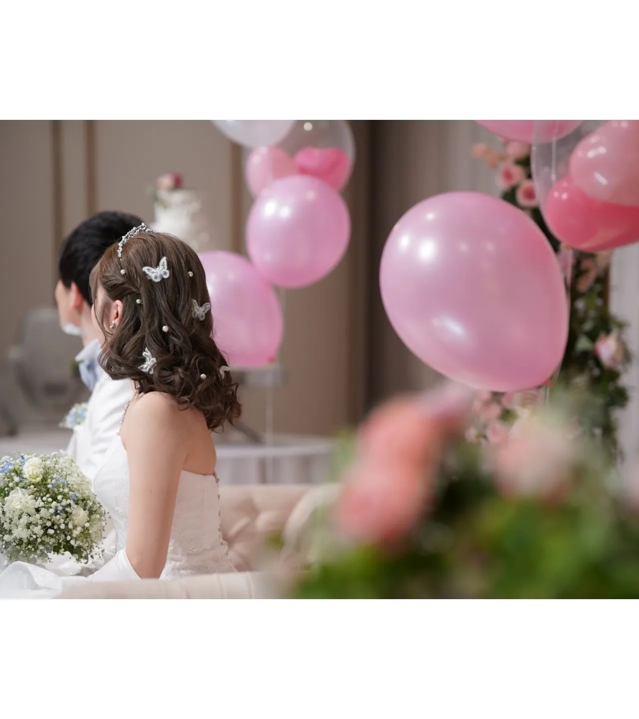 4回ヘアチェンジしたのですが、必ず正面と後ろどちらから見てもアクセサリーが見えるように配置しました。