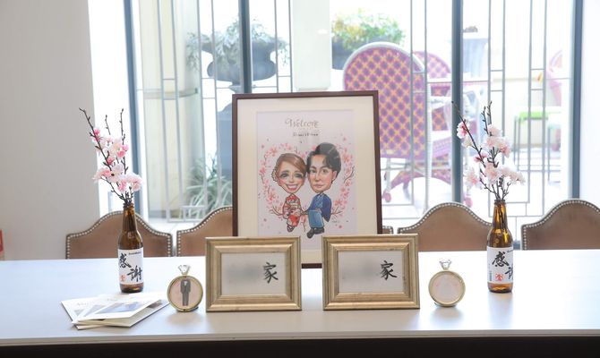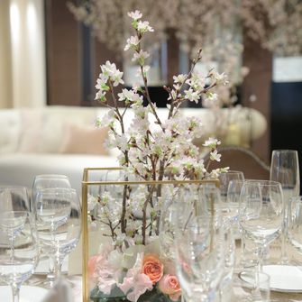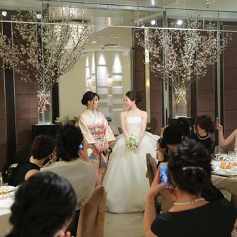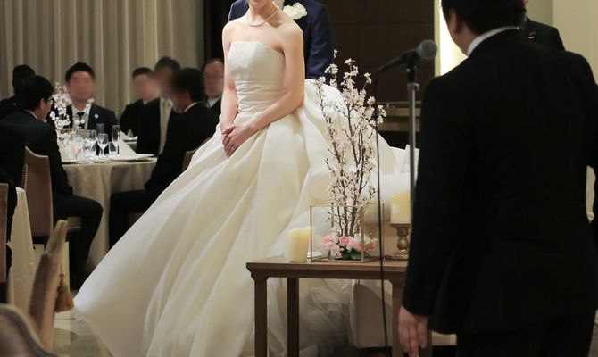 結婚式のテーマはお花見。 ゲストもスタッフもみんなでお花見をしているかのような1日になるように、桜を様々な場面に取り入れました。
